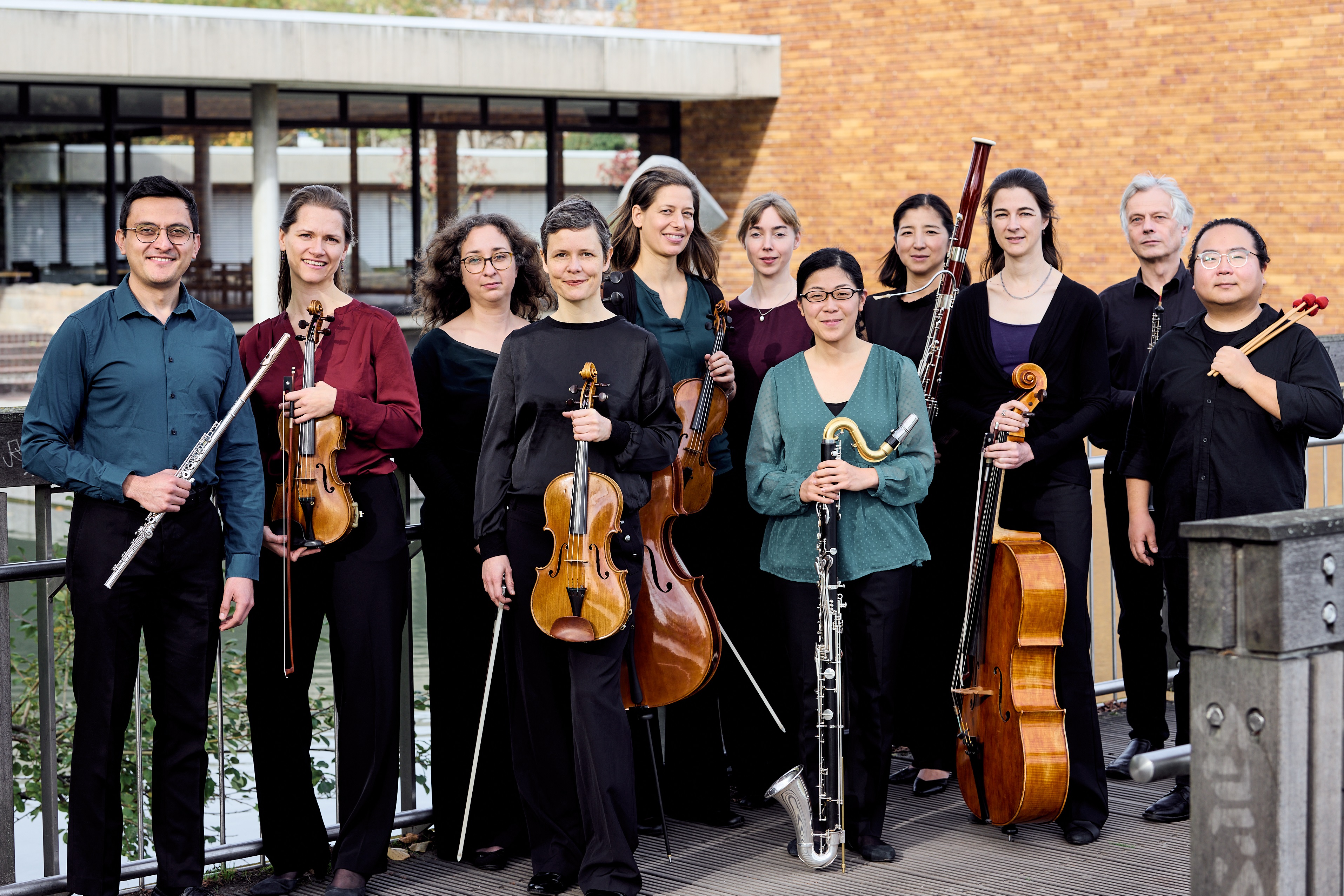 Dante Montoya (Flöte), Jörg-Peter Mittmann (Oboe, Ltg.), Merve Kazokoglu (Klarinette), Helene Schütz (Harfe), Jie-Goo Lee (Schlagzeug), Mareike Neumann (Violine), Sungkum Jennie Yang (Violine), Maria Pache (Viola), Jennifer Aßmus (Violoncello a.G.)